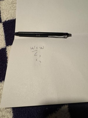 [This review was collected as part of a promotion.] As a regular pen, it’s a solid pen. Nice thin tip and writes well… as for the eraser, the pen mark itself is gone but leaves behind a smudgy spot it it’s place. So for that I’ve docked a star. Also, initially I couldn’t figure out how to click the pen out/on… for those who couldn’t figure it out, the clip portion is the clicker!