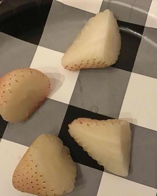 [This review was collected as part of a promotion.] These strawberries are beautiful and unique with their white color. They taste exceptional! I love that they have a peek of red coming through. These would be a unique gift for a loved one or your children. My children certainly approve of these!