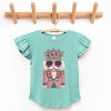 Pink and Teal Nutcracker Patchwork Print - Flutter Sleeve Graphic T-Shirt
