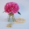 Artificial Hydrangea in Vase with Wood Bead Garland - Real Touch Flowers, Clear Faux Water, No Maintenance, Home Decor