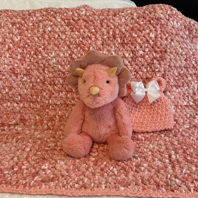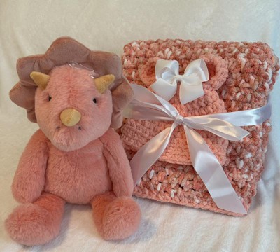 This plush Dino is so soft and cuddly. I love the color it went perfect with a few blanket sets I made for my Etsy shop. https://mimiscozyhandknits.etsy.com Irecommend this Dino for the little girl who loves dinosaurs..