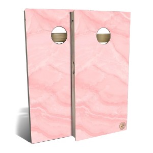 Product Name: Skip's Garage | Pink Marble Cornhole Board Set | All-Weather | Add Carrying Case