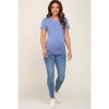 ’s designed to grow with your bump and keep you comfortable all day long. The timeless crew neck and classic short sleeves make it easy to style—pair it with jeans, leggings, or skirts for effortless everyday looks. Whether you’re heading to brunch or relaxing at home, this vibrant blue tee is perfect for any occasion. Stay stylish and comfy throughout your pregnancy and beyond with this versatile staple piece.