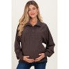 Stay cozy and stylish with our Brown Brushed Knit Button Collar Maternity Pullover. Crafted from soft, breathable fabric, this pullover gently hugs your changing shape while providing all-day comfort. The button-up collar adds a trendy touch, perfect for layering or wearing solo. Featuring relaxed long sleeves and convenient side slits, it offers flexibility and ease of movement throughout your pregnancy. Whether you're running errands or relaxing at home, this pullover is a versatile wardrobe essential for expecting moms who want comfort without compromising on style. Available in a warm, rich brown shade that pairs effortlessly with your favorite maternity jeans or leggings. Embrace maternity fashion with comfort and confidence!
