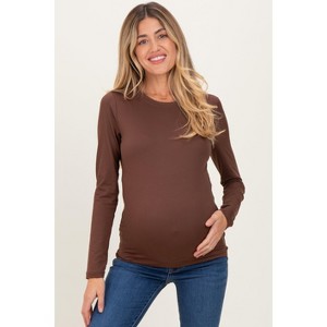 Pinkblush Dark Taupe Basic Long Sleeve Maternity Top - 1 of 3
