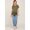 Meet your new go-to: the Olive Basic Crew Neck Maternity Tee. Designed with premium, ultra-soft stretch fabric, this closet staple offers a comfy, flattering fit through every stage of pregnancy. The crew neck and classic silhouette make it perfect for layering or wearing solo, while the rich olive hue adds an on-trend touch to your maternity wardrobe. Pair with jeans, leggings, or skirts for effortless, everyday style before and after baby arrives! Machine washable for easy care. Stay stylish and comfortable all day long with this must-have maternity tee.