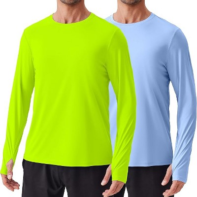 Pinspark 2 Pack Men's Rash Guard Shirts with Thumb Holes Lightweight UPF 50+ Long Sleeve Sun Shirt Quick Dry Swimming Shirts Black&Navy L