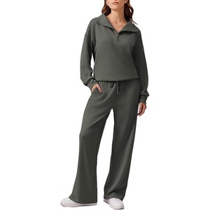 abric Type : Lightweight air layer fabric, breathable with 4-way stretch, value both luxury and coziness.Features : This sweatsuit set includes a half-zip, long-sleeve oversized sweatshirt and high-waisted drawstring wide-leg sweatpants, making it a stylish 2 piece tracksuit set.Occasion : 2 piece sweatsuits are great for everyday wear, the gym, sports, running, being active, lounging, traveling, the beach, fitness, and just hanging out at home