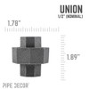 Add an industrial edge to your DIY projects with the PIPE DECOR union fitting. This essential piece allows for sophisticated pipe designs by enabling you to create a perfect loop, as demonstrated in our Loop coffee table. Without the union, it would be impossible to fully connect a loop of pipe. Each fitting is crafted from durable, industrial-grade malleable iron, ensuring long-lasting strength and authenticity. You’ll recognize genuine PIPE DECOR parts the moment you hold them—beauty and beast, strength and style combined. These are real industrial fittings built to stand the test of time. Accept no substitutes. Extra pieces and accessories are available for custom projects and future expansions, allowing you to plug and play as your creativity grows.