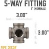 PIPE DECOR is always pushing the boundaries of designing with pipe, creating fittings that give you more choices to build your dream projects. A PIPE DECOR exclusive, this 5-way fitting connects five pipes together, making it perfect as the center of a pipe light fixture or for any other creative project—the sky’s the limit. You’ll recognize PIPE DECOR parts and accessories the moment you hold them: a balance of beauty and strength, style and durability. These are real industrial materials for your decorations and designs, so accept no substitutes. Extra pieces and accessories are available for custom projects and expansions, allowing you to plug and play as desired. Each fitting is coated in light industrial oil to prevent rusting, and we recommend cleaning and sealing before use. IPS threads provide compatibility with other project materials such as lamp parts, valves, and more, and the fittings work seamlessly with any pipes, fittings, and PIPE DECOR furniture kits of the same diameter. Create a one-of-a-kind shelf, table, lamp, or piece of art that perfectly fits your space.