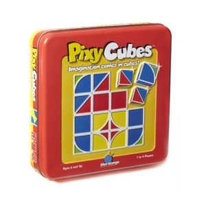 Arrange colorful cubes in different designs with Pixy Cubes. Each cube is colored green, red, yellow, and blue either as solids, halves, or in two variations of crescent shapes. You can race for speed, challenge your memory, or simply create pictures and designs as a pastime.In the speed game, players try to be the first one to arrange their cubes in a pattern designated on a Challenge Card. In the memory game, players have ten seconds to memorize the pattern, then try to be the first one to duplicate it.Pixy Cubes also contains Design Cards that players can use as a layout. Some cards show the sides of the cubes while others are plain. The levels of difficulty vary. With or without the models, the possibilities are just about endless!