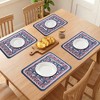 - hese washable placemats can be used by just wiping them off with a wet cloth or towel when debris is present, elevating dining experience