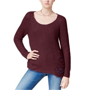 Planet Gold Womens Zip Back Pullover Sweater, burgundy, Medium