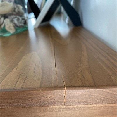 I’ve owned this item for less than 3 months and it is cracked along all the seams where the wood planks meet. The return window has expired, so now I’m stuck with a defective piece of furniture. Highly disappointed, especially given the price tag.