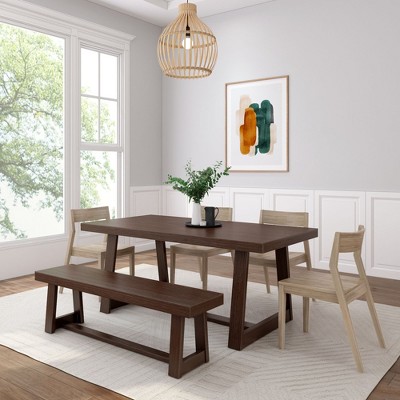 Plank+Beam 72" Modern Rounded Solid Wood Dining Table Set with 2 Benches, Walnut