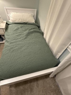 Plank+Beam Solid Wood Twin Bed Frame with Headboard, Modern Platform Bed for Adults, White