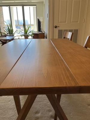 I love the table! It was easy to put together - a very neat package. Alas! It waz a bit too big for my kitchen! I had to give it up, reluctantly. I have Plank & Beam at the top of my list of companies to buy from in the future! Also, great customer service!!