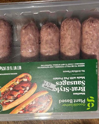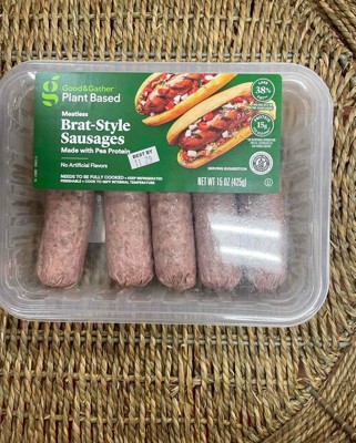 [This review was collected as part of a promotion.] I purchased these Good and Gather plant-based bratwurst style sausages in a 15 ounce package. These brat style sausages are made with pea protein and are a much healthier choice than a regular brat. These brat style sausages, grilled up great and tasted just as good as a regular brat . I received an incentive to write this review.