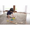 We were very excited to receive this item, but we were sad to find that one of the challenge tracks was chipped. The golf clubs and balls are made of wood and of very high quality. The set also comes with a nice canvas storage bag. The tracks are made of fine wood dust, and we were afraid more pieces would chip in the future from use. We decided to return this item. If the tracks were made of plastic or other sturdy material, we would have kept this set. It's a beautiful design, though!