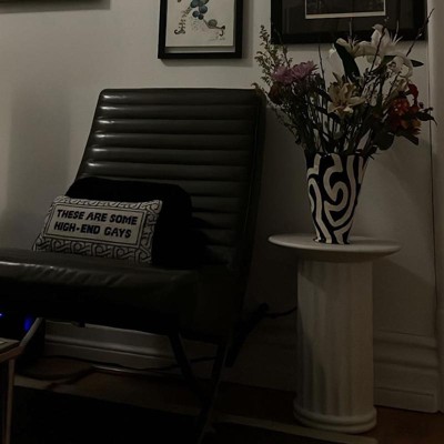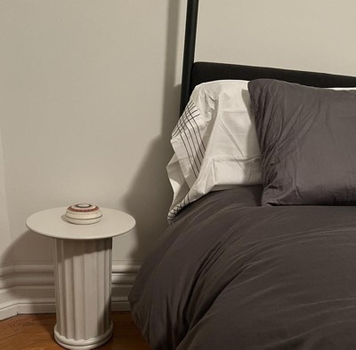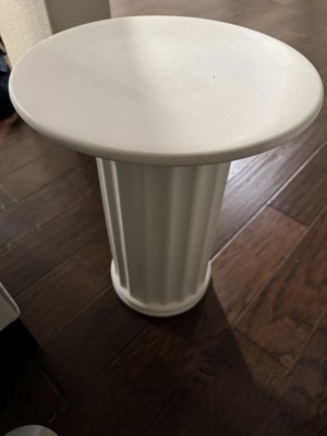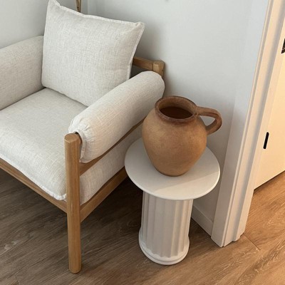 I love the unique style of my Threshold designed with Studio McGee Plaster Accent Table White. It’s sturdy, well made and requires no assembly. It’s the perfect height to use alongside my reading chair. It looks nice as an accent table in my living room, but would look great in almost any room. The top is spacious and can easily fit a lamp or other decor. It’s a beautiful addition to our living room.