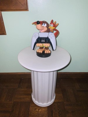 It’s heavy and fragile. The top is flat for a base. It stands about two feet tall off the ground. If a cat were to try to jump off of the top, the force will knock over the column. If it lands on a hard surface it is likely cracked or broken. Mine landed on carpet so there was no damage.