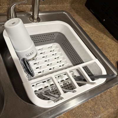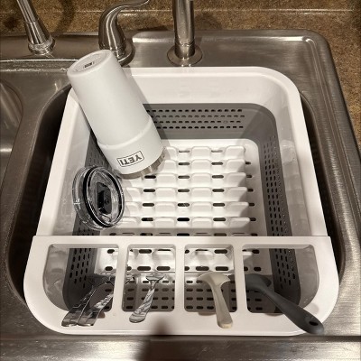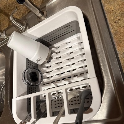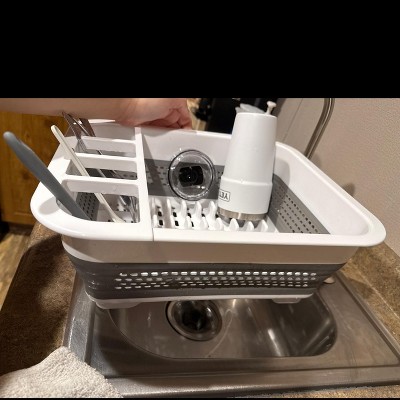 Plastic Collapsible Dish Rack with Drip Tray White - Brightroom™: Freestanding Drying Rack with Drain Board