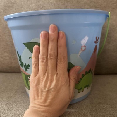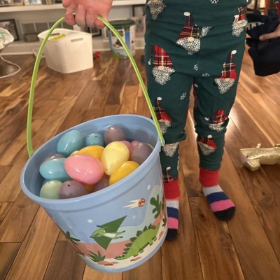 [This review was collected as part of a promotion.] This bucket is adorable. It is much bigger in size than I thought it would be! I’m thinking about 20 plastic Easter eggs could fit in the bucket. The material is sturdy and the design is adorable. My toddler grandson is obsessed with dinosaurs right now so I know he will love it. It’s great it can be repurposed for sand play after Easter as well. The handle is a bright color that coordinates well. I received an incentive to write this review.