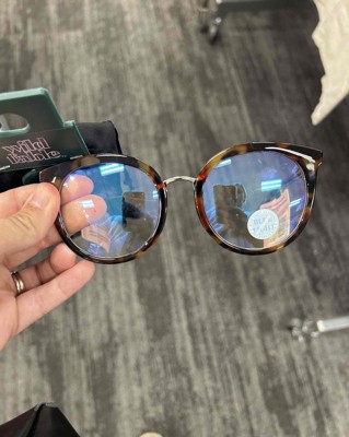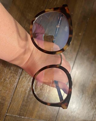 Brown glasses from Wild Fable™ feature tortoiseshell print. Blue-light filtering lenses help keep your eyes protected while working on screen. Round-shape glasses made with a mix of metal and plastic. UV protection feature makes the glasses great for sunny days.