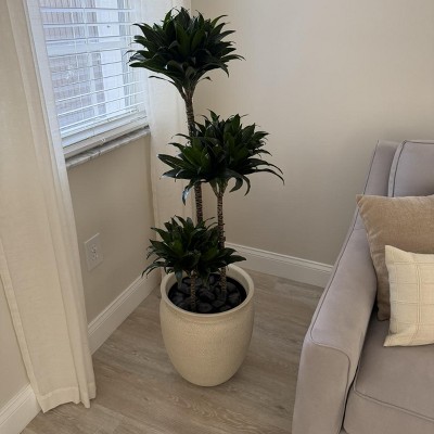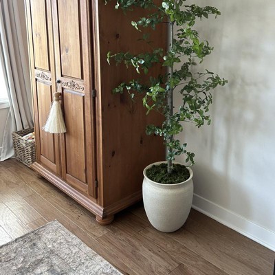 I love this planter. I was looking for the perfect planter for Audrey Ficus tree in my primary bedroom. This fit perfectly with the style of ny room, not too modern and not too traditional… justttt right haha. The outside is a creamy faux concrete type texture. I’d love this in other sizes too!