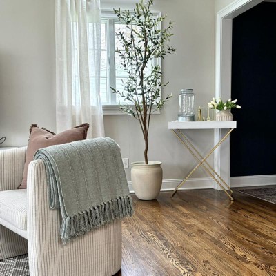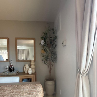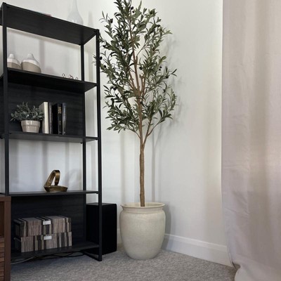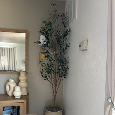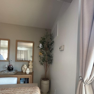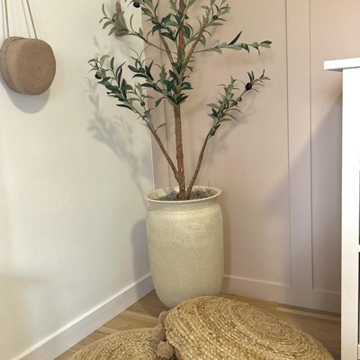 This pot is very large, but also slim enough that it won’t take up a ton of space. I’ve purchased outdoor pots from Studio Mcgee in the past, and I don’t think they hold up super well if not under a covered porch. I’m using this pot indoors and placed an already potted faux tree inside this planter to make it look taller and elevated.
