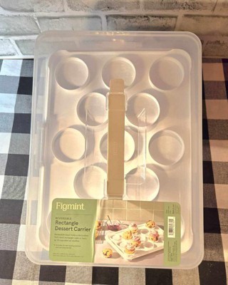 I love my new cupcake carrier! This rectangle carrier offers a sturdy handle making it easy to carry. The locking latches keep all of your yummy desserts nice and secure. The carrier is clear allowing you to easily see what is inside. This carrier is very versatile as it can hold 13 cupcakes, muffins or even a cake! To use the cake feature, you simply flip the base. I have used this a few times already and it has worked perfectly. It is also super easy to clean and store. If you are looking for a high quality cupcake carrier, I recommend this one by Figmint!