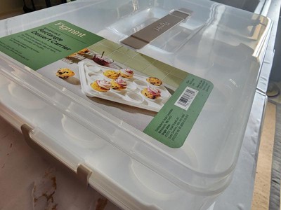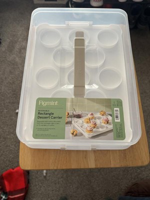I absolutely love the fact that this is reversible! This allows me to keep my muffins and cupcakes together safely and if I need to transport or hold my rectangular cakes, I can do that as well! The top securely locks in place on each side, the handle is comfortable and has a nice texture for gripping, and best of all, it's easy to clean! I love a good utility that's easy to clean up! I'd highly recommend this!