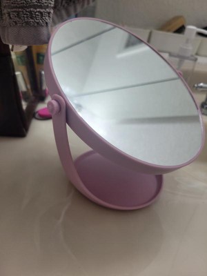 Whether you're applying makeup, styling your hair or going through your skin care routine, make sure you're doing it easily and in style with this Plastic Vanity Mirror from Room Essentials™. Made from sturdy plastic for lasting use, this round vanity mirror easily rotates all the way around to help you see just want you need, and has a sturdy round base that doubles as a small tray for your accessories. Place this pink vanity mirror on your bathroom counter or dresser so you can easily check your look before you head out the door.