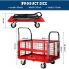 - 【Maneuverability Meets Safety】This platform truck cart with Cage have adopted a plug-in design, making the connection between the cart panel and the handrails more stable.