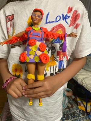 [This review was collected as part of a promotion.] Kids loved dressing up the Barbie. A little difficult to get on the doll but easy to make the clothes. Love that you can make whatever you want with the playdoh. My kid didn’t want to mess up the floral pattern because it was so pretty. Really fun toy for kids!
