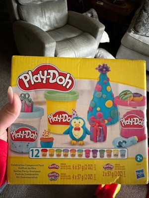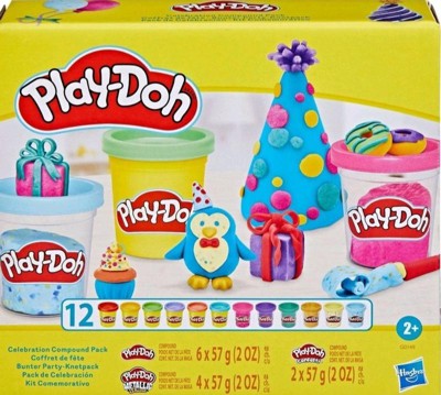 You can't go wrong with Play-Doh. It's literally a staple in every household. So the brand name Play-Doh celebration compound pack comes with 12 different colors. Each container is 2 oz two of the Play-Doh containers are classified as confetti. One is in yellow and one is in light blue. The confetti containers are indicated by literally confetti looking squares of multicolor sprinkles. There are four metallic colors. Pink, bronze, blue, and purple. Metallic containers are indicated by a sparkly shine. You have six basic solid colors that seem to be primary colors. You have red, blue, yellow, green, purple, and pink. The colors are bright and pop out. I believe they would call it the celebration pack due to the specific colors that are associated with a party theme. You simply pop open and let the fun begin with molding whatever you desire in your fingers. Play-Doh is of soft and movable texture. As long as you place them in the container it takes a while for them to dry out. You really can't go wrong with Play-Doh. I have never met a kid that doesn't love them.