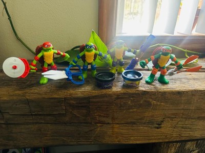 [This review was collected as part of a promotion.] What a fun way to play with Play-Doh! You get each of the amazing Ninja Turtles. Each turtle has his own tool. From rolling out pizza dough with fun impressions to cutting it out with an amazing Ninja Pizza cutter, the fun is endless. The turtles hold their tools perfectly in their bendable hands. Overall a great little set!