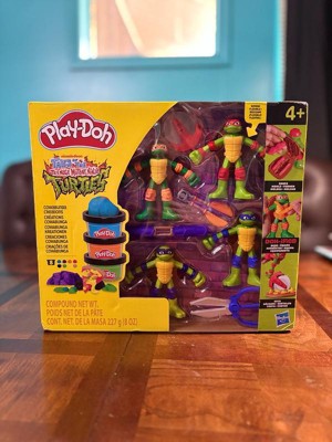 [This review was collected as part of a promotion.] I played with this play doh set with my nephew for over an hour. The box was huge, it came with so many different play doh colors, all of the ninja turtles & their weapons doubled as the play doh tools. We were able to make pizzas and then he wanted to play fight with the ninja turtle figurines. 10/10