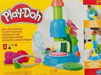[This review was collected as part of a promotion.] This playdough kit is so cool not only did my daughter get to make molds of plants and butterfly's and bugs with different playdougg colors but then the bottom part that u put what u made on lights up so when u look at it through the microscope u can actually see it up close like a real science set we liked making all the little plants and bugs in the clear molds and putting the smaller molds that are on the side of the microscope in the clear container and looking at what we made up super close what a cute toy