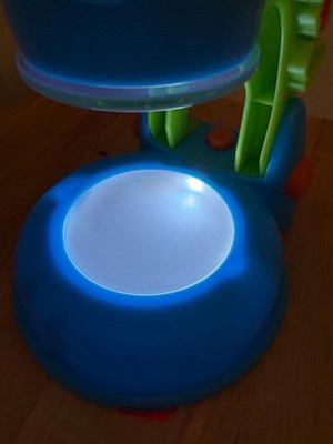[This review was collected as part of a promotion.] First off, my child has had fun playing with this toy. However, it could really be improved upon. The green tube of the “microscope” is able to be pushed and pulled up and down to “zoom” in on what is on the tray. There is no actual magnification, it’s all just pieces of clear plastic. There is one button that turns a light on with one press, a second press makes the light flicker on and off, and a third press turns it off. The option to have the light flicker on and off is just annoying to my child and myself and would rather not have the option. I wish there was some degree of actual magnification on the microscope. The molds for the germs are quite cute. Overall enjoyable but could have definitely used some upgrades.