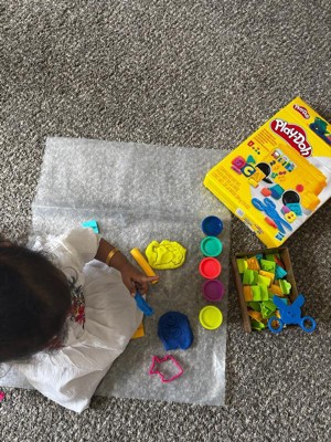 [This review was collected as part of a promotion.] This Play-Doh set is perfect for my 3 year old! She loves the letters and shapes. Not only is this a toy, but it can be used to facilitate some learning as well! She immediately mixed all of the colors of Play-Doh. All together they are a grayish purple. The cookie-cutter pieces and the bus are super fun components!