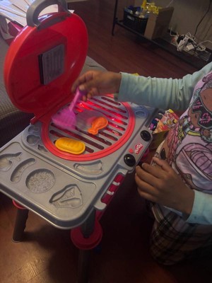 - SIZZLING LIGHTS AND SOUNDS: The kids BBQ grill set takes pretend play to another level with the glowing grill grate and sizzling sound effects (requires 3 AA batteries, not included)