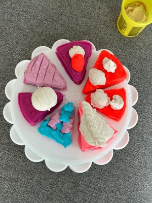 [This review was collected as part of a promotion.] Excellent Play-Doh play set for your little baker! This set comes with everything they need to let their imagination go create a variety of cake slices. So easy to put together and safe for your child. Comes with 11 Play-Doh tubs of colors, molds and shapers. Also included is a cake stand and slice server.