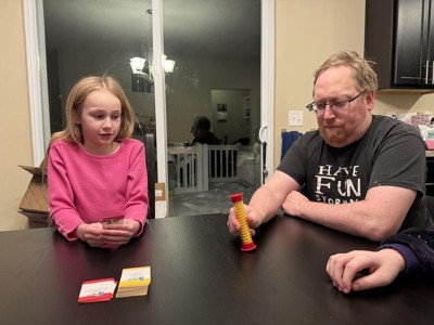 We received this game to sample in exchange for our honest review. There are only two of us in the household- an adult and a 15 year old. This game was great for just two people and we plan to bring it with us to a game night we have monthly with a bunch of friends. It is a super fun game and easy to learn quick. The questions on the card are good for a wide age range. I even think you could easily have this in the car for road trips. Great game for families or group of friends.