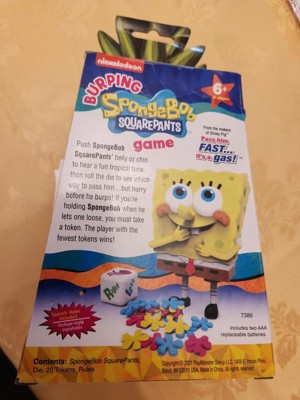 Omg I received this in exchange for my honest review and my kids love a burping SpongeBob.. this is a game like hot potato but updated for kids. They love that they hold SpongeBob and roll a die and the dice tells them what direction to pass SpongeBob as he plays music if u are left holding him when he stops playing music and burps u take a token..whoever has the least amount of tokens is the winner!!! So cute so Awesome!!!!