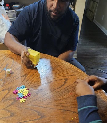 Oh My Starfish! My family hasn't had as much fun as we did tonight playing the Burping SpongeBob Squarepants game! It's a simple, yet exciting active play game that everyone can learn on-the-spot. It is similar to the old-fashioned hot potato game with a hilarious twist. You push the button on his chin and tropical music plays, you quickly roll the dice, to see if you pass him left or right, or if you get a jellyfish, you must roll again. Then, you rapidly pass him in the designated direction until a burp is heard. The one getting the burp, must take a seaweed flower. The one with the least amount of seaweed flowers wins the game. We were all laughing so hard, one time, we almost even missed his burp, which is pretty loud. SpongeBob is a very cute soft vinyl material, and brightly decorated, and is a good palm-sized shape. It does take 2 AAA batteries, that are not included. Every home, or pineapple under the sea needs to have the Burping SpongeBob Squarepants game by PlayMonster in their collection!