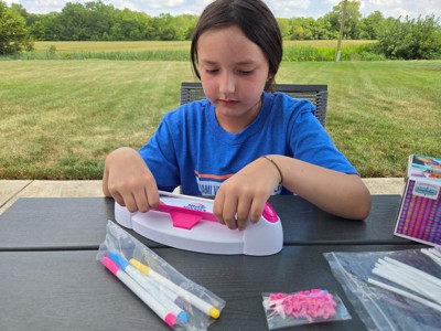 My 9-year-old granddaughter received this bracelet maker in exchange for an honest review. She found the instructions easy to understand and the bracelet maker easy to assemble. She liked the variety of bracelet templates and the option of creating your own design. She was impressed that it had an option for people, like her cousin, who are left-handed! They will have the same ease in making bracelets that she did. The only con that was also a pro was the clasp. When attached, it is very secure to the point where it was difficult to get off, but that also makes it hard to lose while being worn! She can't wait to make more bracelets!