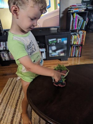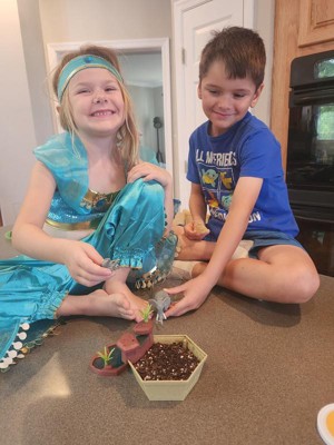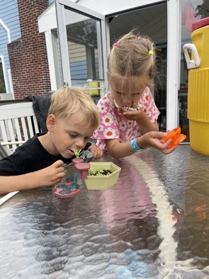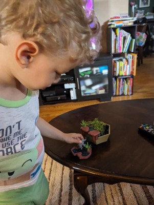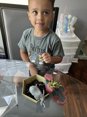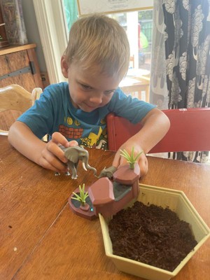 This play kit is so awesome! My 4-year-old son stayed engaged as we built the planter and then played with the elephants at the watering hole. This toy offered a quick and easy initial play period and then days of entertainment to follow as we watched the plants grow and develop!