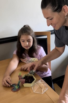 This was a fun activity to do with my four year old. She was able to follow the directions easily and to do it with only a little help. She liked playing with the mom and baby while we waited for the plants to grow. The mom and baby animals kept her interested in watering the plant and checking to see how much it grew everyday.
