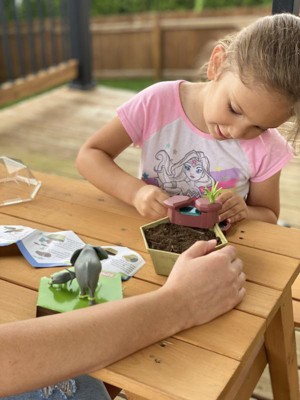 My daughter was excited to get this since she loves elephants and growing a garden of her own. The elephants have a semi-soft feel and the large elephants head moves! After putting together the scene, we added our soil and the provided seeds. It only took a couple days of watering to see the sprouts peek out. We liked that the products were made of recycled plastic!